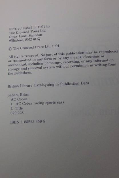 IF YOU ARE A LOVER OF AC COBRA, WANTING TO BUY OR RESTORE A COBRA, THEN THIS INCREDIBLE HARD COVER REFERENCE BOOK IS FOR YOU. THERE ARE INCREDIBLE FACTS AND AN ABUNDANCE IF ILLUSTRATIONS AND REFERENCES.