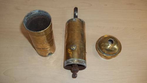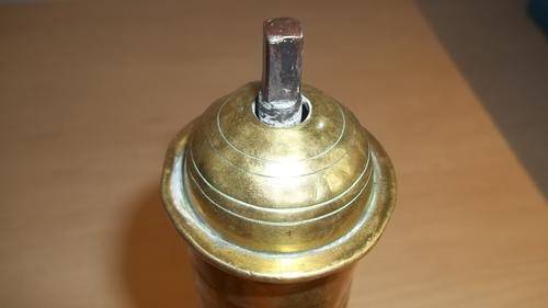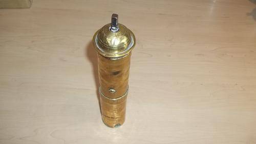 THIS EXQUISITE HAND HELD SOLID BRASS COFFEE GRINDER IS BELIEVED TO BE A TURKISH COFFEE GRINDER. IT IS HOWEVER MISSING THE CRANK HANDLE, BUT STILL A VERY COLLECTIBLE ITEM. THE GRINDER CONSISTS OF THREE COMPONENTS, AND EVEN HAS A LITTLE GROUND COFFEE IN THE BASE OF THE GRINDER. THIS TYPE OF GRINDER WAS ALSO USED TO GRIND SPICES. THE GRINDER HAS A BEAUTIFUL DESIGN AROUND IT. IT IS A REALLY OLD PIECE AND VERY WELL USED.