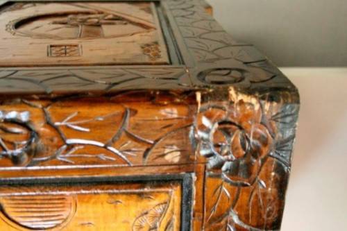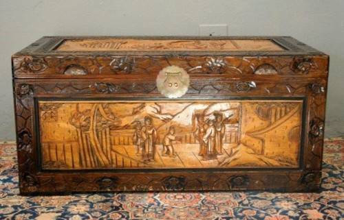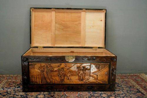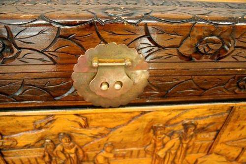***Superbly carved oriental teak and camphor wood kist***