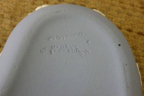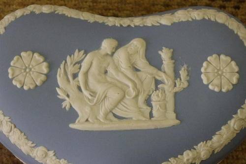 FROM THE INTERNET: “Jasperware, or jasper ware, is a type of pottery first developed by Josiah Wedgwood in the 1770’s. Usually described as stoneware, some authorities have described it as a type of porcelain. It is noted for its matte finish and is produced in a number of different colours, of which the best known is a pale blue that has become known as Wedgwood Blue. While named after the mineral jasper, modern analyses indicate that barium sulphate is a key ingredient. Wedgwood had introduced a different type of stoneware called basalt a decade earlier”.