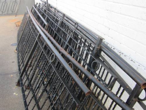 This superb collection of top-quality wrought iron balustrade sections have a running meterage of 40.37 meters. The wrought iron balustrade has a combination of round-top and flat-top detailing and is in two designs (please view the pics for clarity). The sections include lengths between 5.16m and 2.73m. Some of the sections have a slight curve in them. Please view the pics carefully to fully appreciate this awesome quality wrought iron palisade and to confirm the condition.