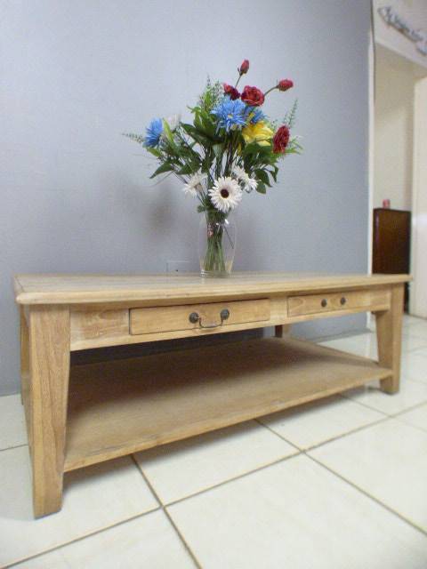 This superb (larger) coffee table with four drawers is in great condition and measure 70cm x 130cm x 46cm high. The table is perfect for an informal lounge, living area, games room, patio or lapa etc. There is minimal/ normal age and usage related wear and tear. The four drawers is a really nice feature and it gives it a stunning quality look. This table would be ideal to distress or to shabby chic. Please view the pics carefully to fully appreciate this stunning coffee table and to confirm the condition.