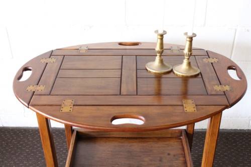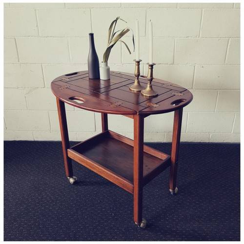 This superb Mahogany and Teak tea trolley with removable tray, with brass hinges and drop sides is in great condition and measures 89cm long x 63cm wide x 74cm high. There is minimal age and usage related wear and tear. This trolley is perfect for serving tea or drinks - it is on its original castors and the removable tray makes this a very practical as well as charming piece of furniture. Please view the pics carefully to fully appreciate this stunning butlers tray and to confirm the condition.