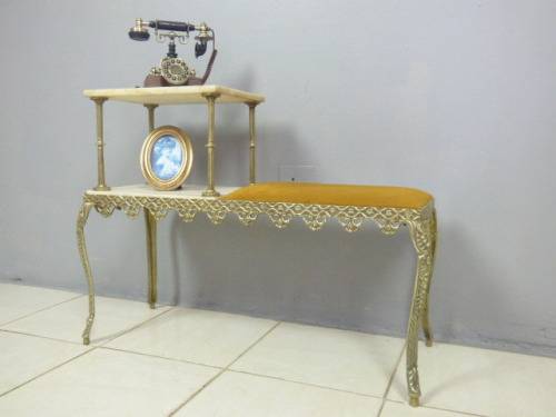 THIS STUNNING VINTAGE BRASS AND MARBLE TELEPHONE TABLE HAS BEAUTIFUL QUEEN ANNE STYLE LEGS AND BRASS PIPES ON THE TOP SHELF. THE TELEPHONE TABLE IS IN STUNNING CONDITION FOR ITS AGE AND THE SIZE OF THE TABLE IS APPROXIMATELY 38cm x 98cm x 73cm HIGH. THIS TABLE WILL LOOK STUNNING IN AN ENTRANCE HALL, FOYER OR HALLWAY.