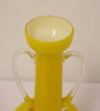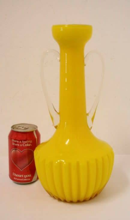 This beautiful vintage sought after Retro Kanawha made yellow glass with a white interior vase is ideal for stemmed flowers and would be an eye catcher on any entrance table, centre table, side server etc. This beautiful vase stands 31cm tall. There are no chips or cracks on this vase. Please view the pics carefully to fully appreciate this awesome Kanawha vase and to confirm the condition.