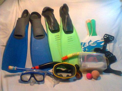 Ideal to go scuba diving The one side large pocket is lined with plastic. Flippers 7-8 and 7-9 sizes. All in good second hand used order.