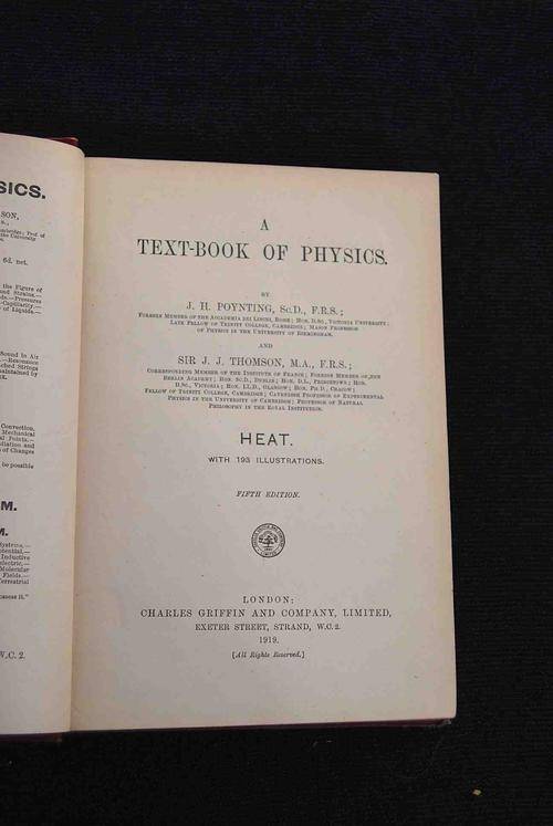 TITLE: A TEXT BOOK OF PHYSICS - SOUND BY J.H. POYNTING DESCRIPTION: HARDCOVER WITH EDGE WEAR AS IN PHOTO. HAS PREVIOUS INSCRIPTIONS ON INSIDE. 1919 FEEDBACK: I TYPICALLY WAIT UNTIL ITEM IS RECEIVED BY THE WINNING BIDDER PRIOR TO POSTING FEEDBACK. THIS ALLOWS BOTH PARTIES TIME TO RESOLVE ANY ISSUES THAT MAY ARISE WITH ANY GIVEN TRANSACTION. |