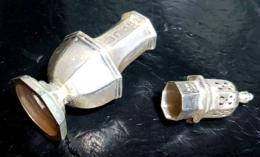 The hinge of the lidded pot is detached. The top of the shaker does not fit well.
