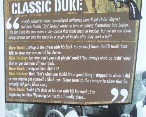 ALL SIX ARE STILL IN 'AS NEW' CONDITION - FIVE ARE STILL SEALED BUT I JUST HAD TO WATCH 'ROOSTER COGBURN' AGAIN - AFTER ALL, I NEEDED TO CHECK ON THE QUALITY OF THE DVD'S - WHICH IS EXCELLENT! EACH DVD COMES WITH ITS OWN BOOKLET ABOUT THE MOVIE AND OTHER HAPPENINGS IN HOLLYWOOD. THE DVD'S ARE ROOSTER COGBURN, PITTSBURGH, RIO BRAVO,McLINTOCK,RED RIVER AND ZANE GREY'S HELLTOWN. GREAT TO WATCH THESE OLD CLASSICS! REFER IMAGES