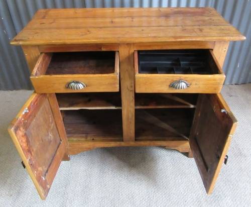 A TRENDY ANTIQUE COTTAGE STYLE SIDE SERVER WITH TWO