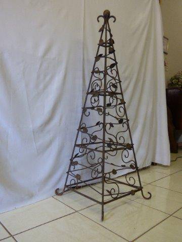 AN ABSOLUTELY STUNNING WROUGHT IRON CREEPING PLANT STAND PERFECT FOR A PATIO OR GARDEN FOR YOUR CREEPERS. NOW OVER XMAS I THINK THIS WILL MAKE A LOVELY XMAS DECORATION IF YOU ADD SOME LIGHTS TO IT. PERFECT AROUND THE LAPA/POOL AREA. THIS LOVELY STAND IS 138cm HIGH.