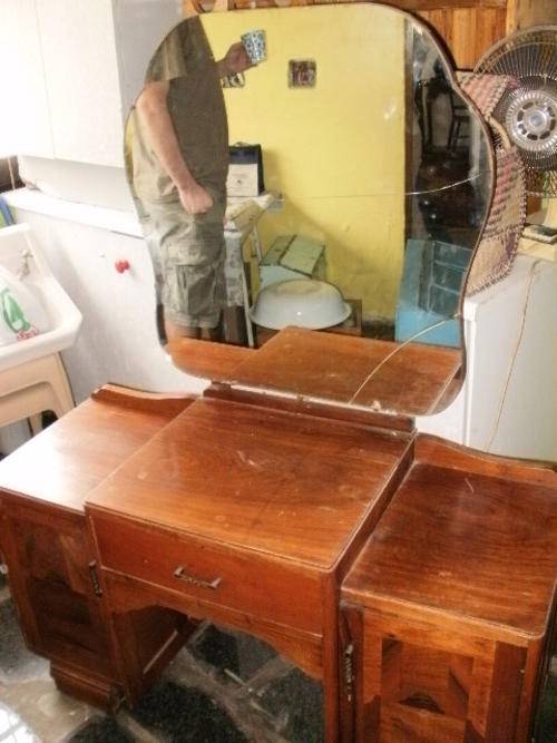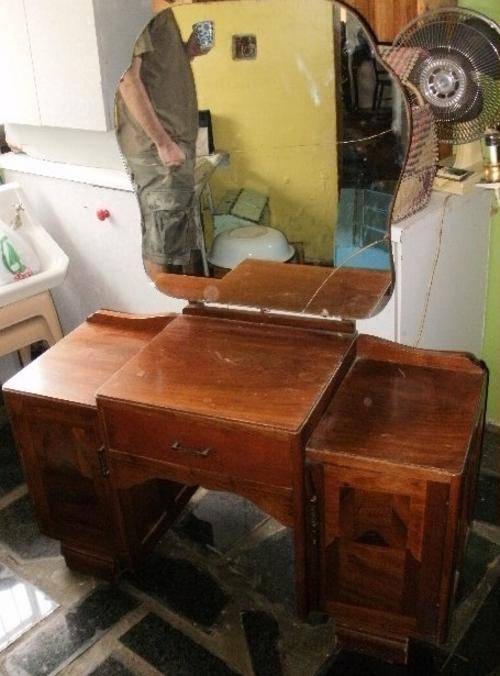 A VERY NICE RETRO DRESSING TABLE IN GOOD CONDITION. THE MIRROR IS CRACKED. 147CM X 46CM X 46CM. SHIPPING WILL BE R250 WITHIN A 100KM RADIUS OF MY HOUSE. PICK UP MORE THAN WELCOME.