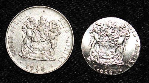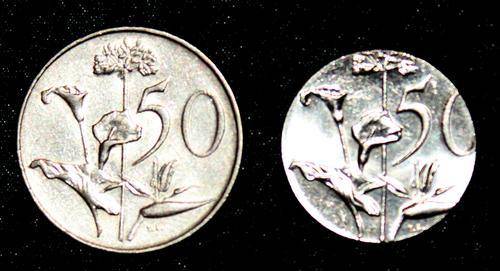 On top of the 1990 50 Cents note the different thickness of the 2 Coins.