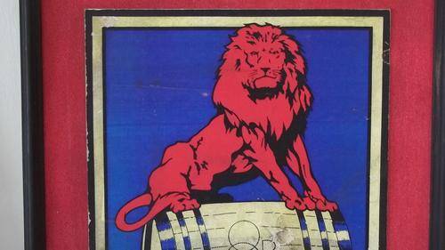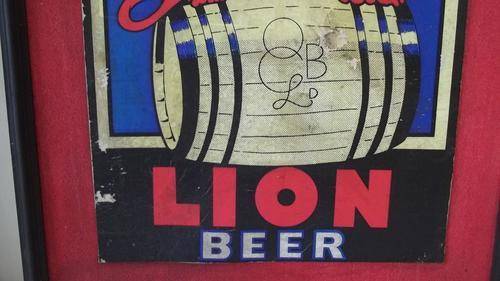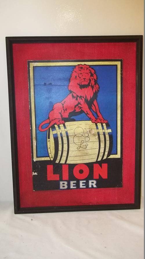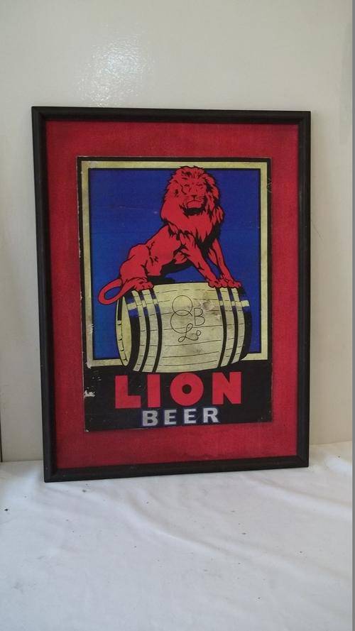 THIS UNUSUAL LION LAGER FRAMED BAR POSTER MEASURES 37.5cm x 50cm AND IS DONE IN BRIGHT RED AND DEEP BLUE. THE POSTER/ PICURE IS FRAMED WITH A THIN BLACK FRAME. THIS WOULD BE A AMAZING PIECE IN ANYONES BAR, POOL ROOM OR MAN CAVE.