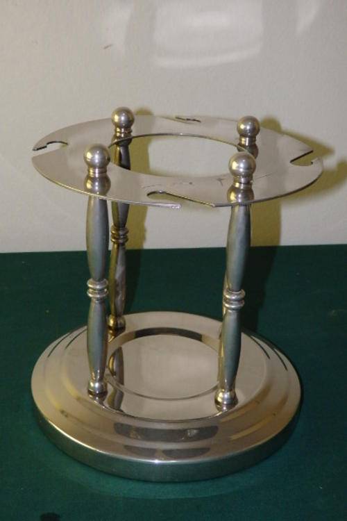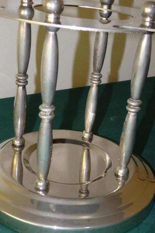 A VERY UNUSUAL VINTAGE EPNS SILVER PLATED WINE HOLDER WITH SLOTS FOR FOUR WINE GLASSES