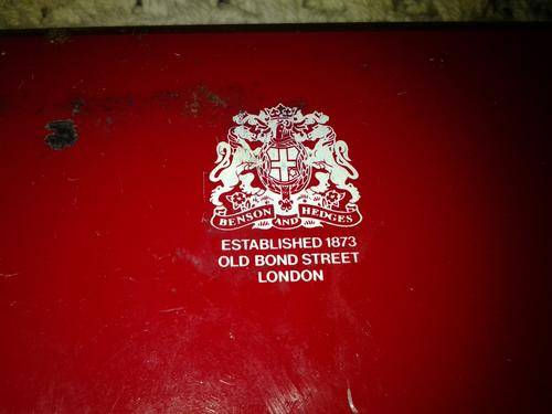 Old Bond Street, London. The tin has the original Benson and Hedges emblem, Established 1873