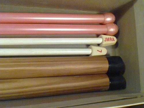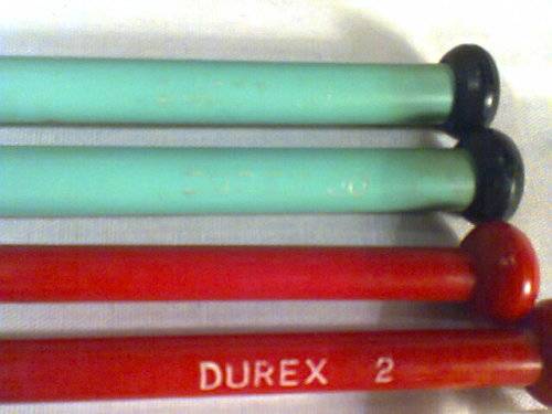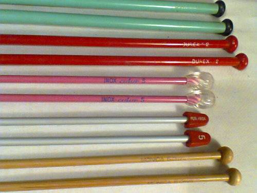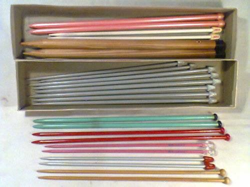 In a real OLD Peter Pad Foundation Box, Befor WW11 Knitting needles could be made of metal or Galalith plastic like these. they had to be machined from stock material, since Galalith could not be injection moulded.Big & Small wooden ones too.