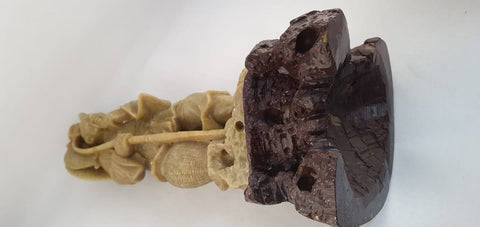 This beautifully carved Soap stone figure of a fisherman or it could be a fish market seller on a stand would be perfect on display or in a cabinet as part of a collection. The figurine measures 24cm. There is minimal age related wear and tear on the figurine. Soap Stone is a metamorphic rock quarried in Italy, the USA and Brazil, and can take on different shades ranging from grey through green to black, depending on the quarry. Soap Stone stone-effect porcelain stoneware has a resistant, functional surface, extremely graphic and shaded, and comes in two different finishes, unpolished and honed. This graphic collection is inevitably reminiscent of an idea of nature and stone.