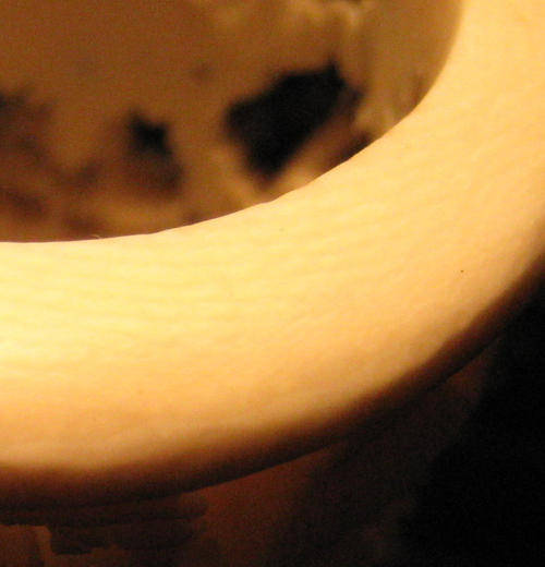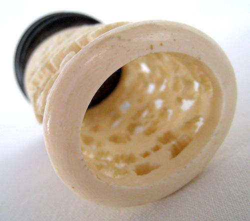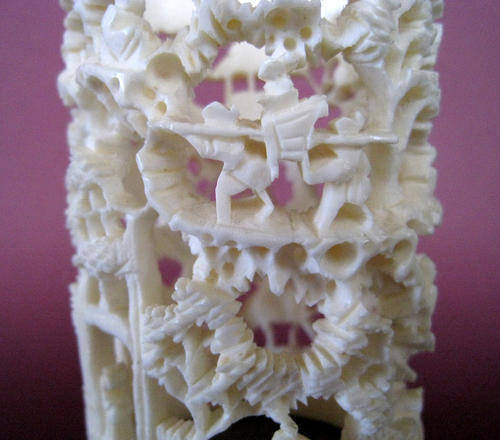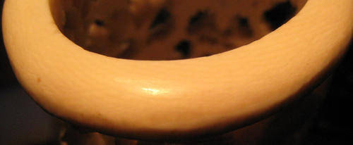 "Genuine ivory is identified by Schreger Lines — a unique pattern of crosshatched diamond shapes that some collectors refer to as “stacked chevrons.” If you see Schreger Lines, this is a practically sure indication of true ivory from either an elephant or a mastodon (i.e., a prehistoric mammoth). Bone does not have this pattern, nor does any other kind of tooth or tusk from animals either alive or extinct." Copied from the Internet