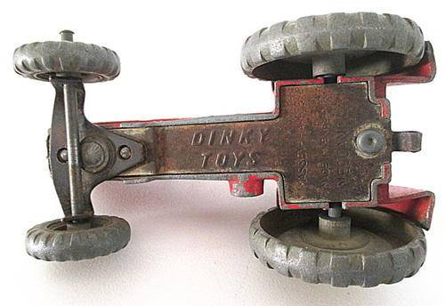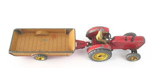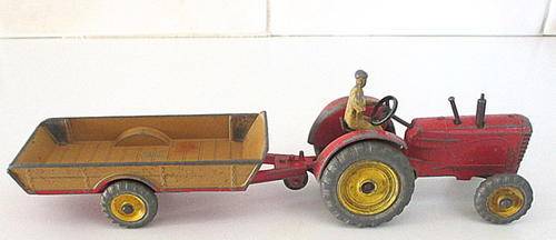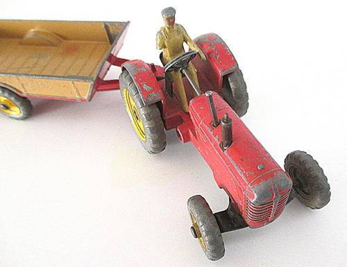 A VINTAGE DINKY MECCANO MASSEY HARRIS TRACTOR AND A HALSOWEN TRAILER --1950's