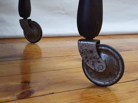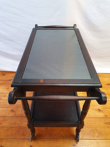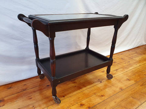 This vintage drinks trolley measures 95cm long x 46cm wide x 73cm high. The trolley has minor age and usage related wear and tear (see pics). The trolley is on its original castors and would look good in an informal area, pool area etc. Please view the pics carefully to fully appreciate this trolleyand to confirm the condition.