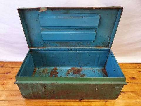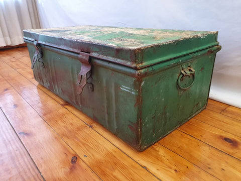This awesome vintage metal storage trommel has amazing character and measures roughly 70cm long x 42cm wide x 33cm high. This trommel makes a stunning storage container and with a little TLC, it could be restored and could be used as a toy box, tool box, storage box or even funky linen boxes etc. There is normal age related wear and tear on this trommel. Please view the pics carefully for the general condition of this awesome trommel