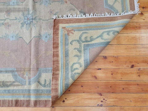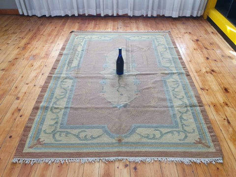 This vintage Kilim carpet measures 200cm long x 150cm wide. The carpet is in fair condition and has age and usage related wear. The carpet combines browns and green colours. The Kilim carpet would be ideal in an informal living room, tv lounge or bedroom. Please view the pics carefully to fully appreciate this Kilim carpet and to confirm the condition.