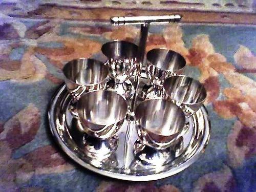 6 x Egg Cup's, EP on Copper + Holder, stamped Emess plate EPNS .