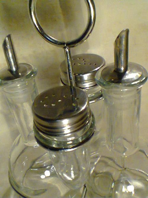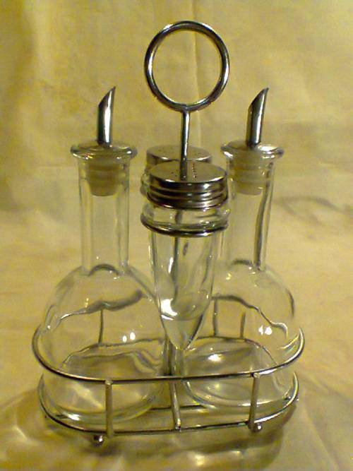 A Vintage Lot of Items, Tray with Cruet set, Toast Rack, Gravy Boat,Napkin Holder.All used condition