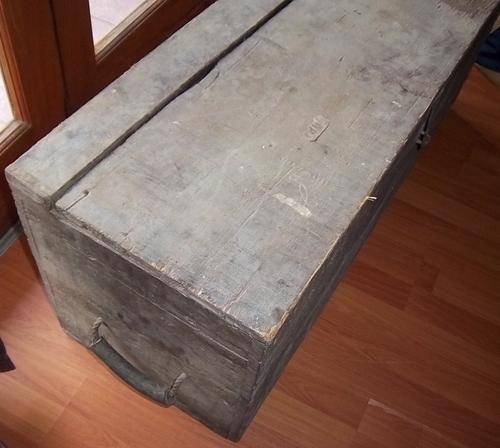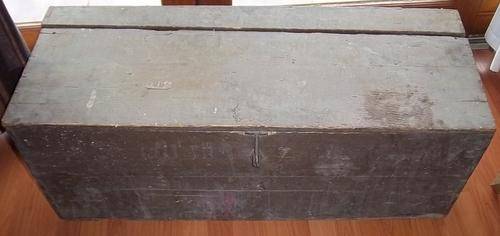 A VINTAGE OREGAN KIST. A VERY NICE PIECE. NEEDS TO BE RESTORED. THE LID IS LOOSE BUT IT LOOKS LIKE IT HAS TO BE LIKE THAT. SOLD AS IS.