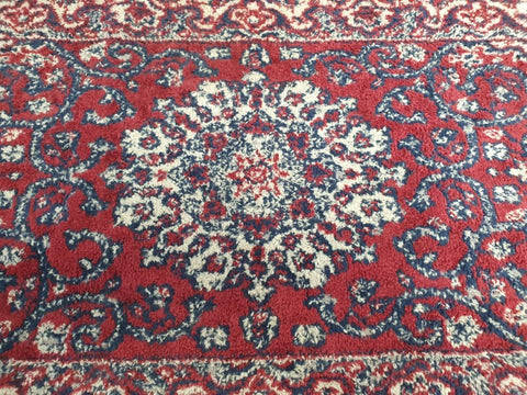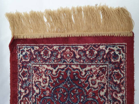 A vintage Persian hand knotted 'table carpet' in reds and blues.