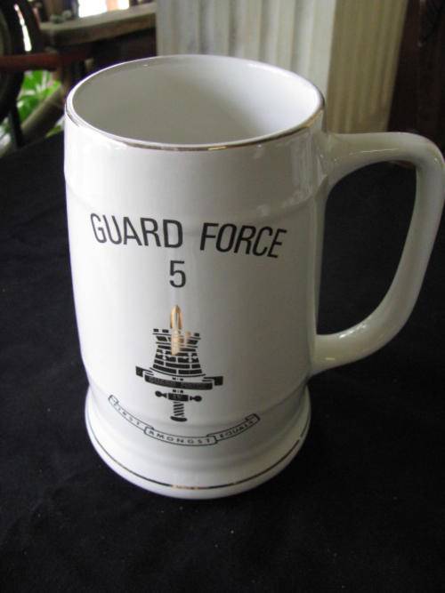 Guard Force was raised in August / September 1975 when the first officers and NCOs were recruited from several units including Intaf. By the 1st February 1976 the unit had been gazetted as a part of the Ministry of Defence. Its commander was Brigadier W.A. Godwin DMM, OBE who had seen service with the British army in Malaya.