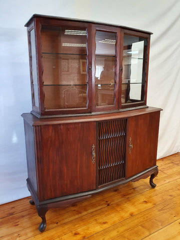 A vintage solid Imbuia Queen Anne footed Radiogram display cabinet/ showcase