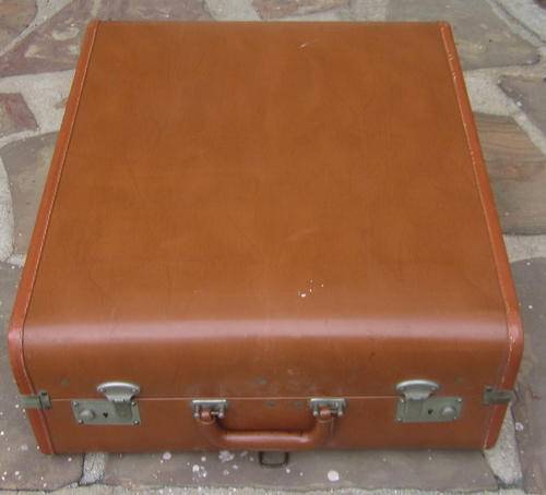 A Vintage suitcase.As per last 3 images it has a water mark but not too bad.It measures 56cm in height 49cm wide.Width Depth top 21cm and bottom 25cm.It would have to be couried if not bought in Cape Town.Buyer to arrange own courier.In overall good condition.