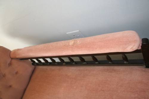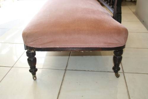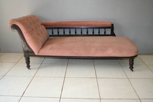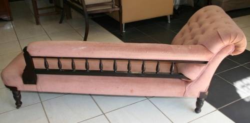THIS WONDERFUL EDWARDIAN UPHOLSTERED DUSTY PINK SOFA IS IN GOOD CONDITION FOR ITS AGE. THE CHAISE DOES NEED A LITTLE WORK DONE AND MAINLY RE-UPHOLSTERING, BUT IT WOULD BE MONEY WELL SPENT AND WOULD GIVE YOU A PIECE WORTH MANY R 1000's. THIS IS A BEAUTIFUL PIECE OF FURNITURE WHICH MEASURES 1500mm LONG x 620mm WIDE x 690mm HIGH. THIS CHAISE WOULD LOOK GREAT IN A MAIN BEDROOM OR PERHAPS EVEN IN YOUR LOUNGE. THERE IS AGE AND USAGE RELATED WEAR AND TEAR SO PLEASE VIEW THE PICS CAREFULLY TO FULLY APPRECIATE THIS LOVELY PIECE AND TO CONFIRM THE CONDITION.