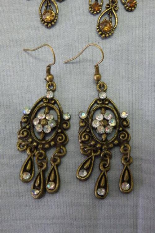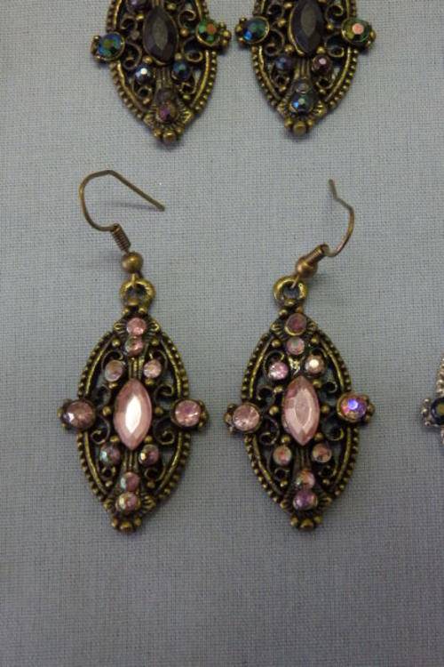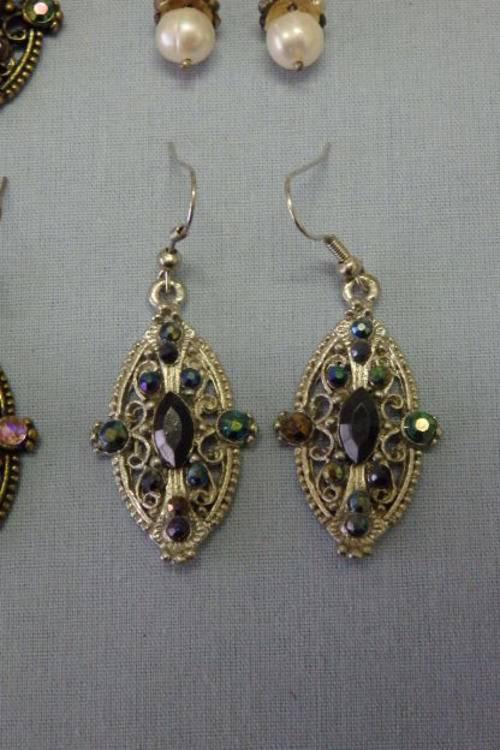 THIS WONDERFUL COLLECTION OF SIX PAIRS OF ASSORTED LADIES "FASHION COSTUME" JEWELLERY EARRING SETS INCLUDES VINTAGE STYLE EARRING SETS AND ARE FOR PIERCED EARS. THE EARRINGS ARE EX-SHOP STOCK AND HAVE NEVER BEEN WORN. THIS IS A WONDERFUL COLLECTION FOR JUST ABOUT ANY STYLE OF CLOTHING. YOUR ONE WINNING BID GETS ALL SIX PAIRS. PLEASE VIEW THE PICS CAREFULLY TO SEE WHAT IS INCLUDED IN THE LISTING AND THE GENERAL CONDITION OF THE EARRINGS. THE ONE YELLOW PAIR HAS A STONE MISSING.