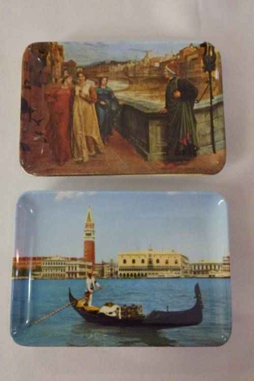 THIS WONDERFUL SET OF 7x "DESTINATION" THEMED PLASTIC COLLECTIBLE DISPLAY PLATES MEASURE BETWEEN 14.5cm AND 15cm LONG x 9.5cm AND 10cm WIDE AND THE SQUARE PLATE IS 13.5cm x 13.5cm. THEY ARE ALL IN GREAT CONDITION
