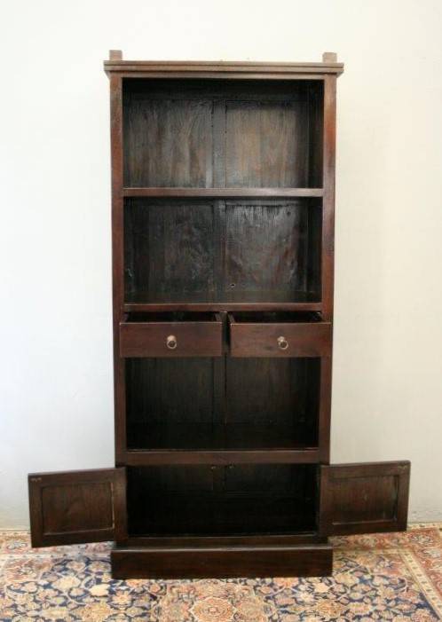 This magnificent large vintage teak display cabinet/ bookcase with is in good condition for its age and measures a very decent 80cm long x 40cm wide x 192cm high. The cabinet would make the ideal display case or even bookcase, and with the two doors at the bottom leading to ample storage space, could even be ideal as a drinks cabinet. This is a heavy and well made cabinet and would complete any living room. Please view the pics carefully to fully appreciate this magnificent and very well made unit and to confirm the condition.