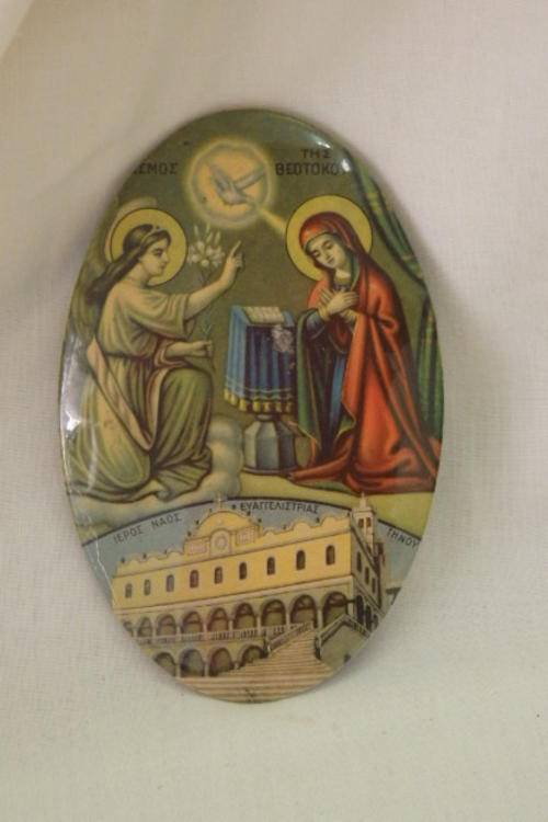 THIS WONDERFUL VINTAGE CATHOLIC COMMEMORATIVE WALL PLAQUE IS IN GOOD CONDITION AND MEASURES 12cm x 8.3cm. THE BACK OF THE PLAQUE IS INSCRIBED "MARIA". THERE IS A LITTLE AGE AND USAGE RELATED WEAR AND TEAR AND SCUFFS.