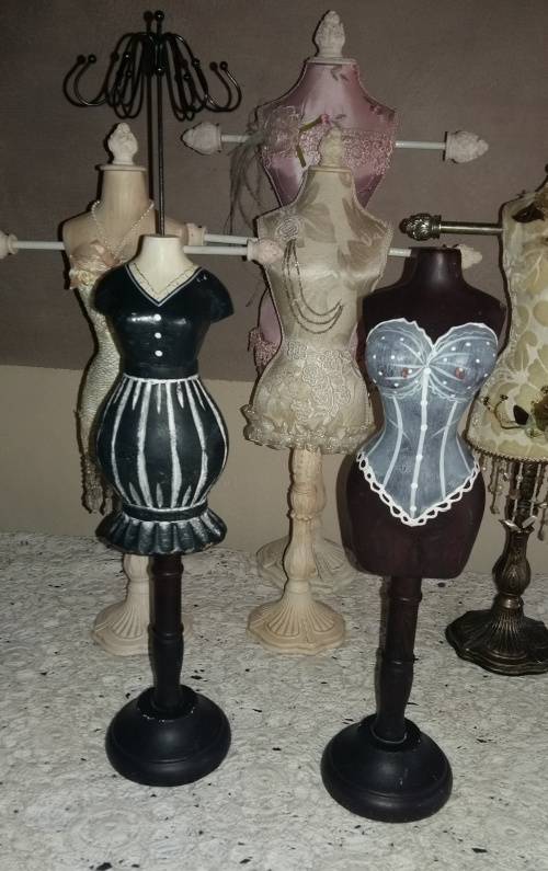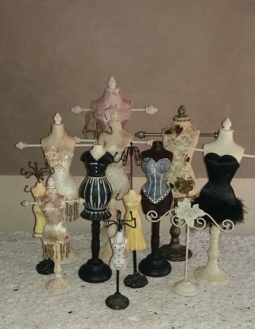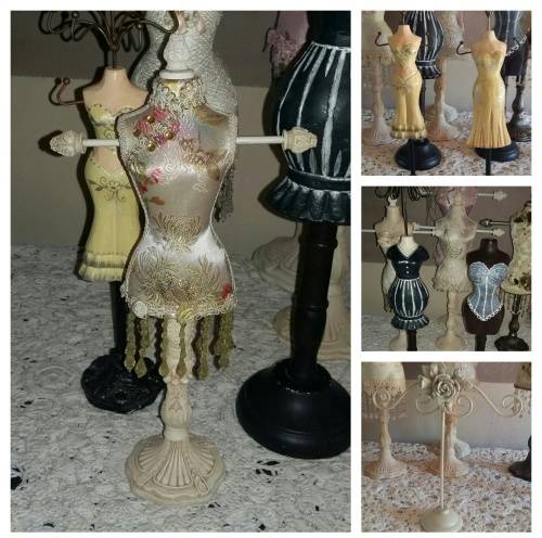 This is a great deal of 12 Jewellery holders in the shape of vintage styled dress forms.