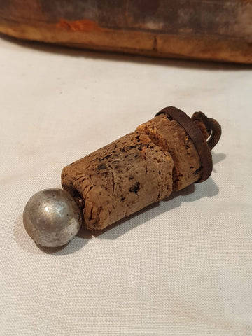 A WW1 British Army cavalry type water bottle in leather cradle with cork stopper and shoulder strap