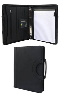 Includes: Notepad, Calculator, Pen Holder, Document Sleeves and Card Holders. With Magnetic Folding Handle and 4-Ring Binders |