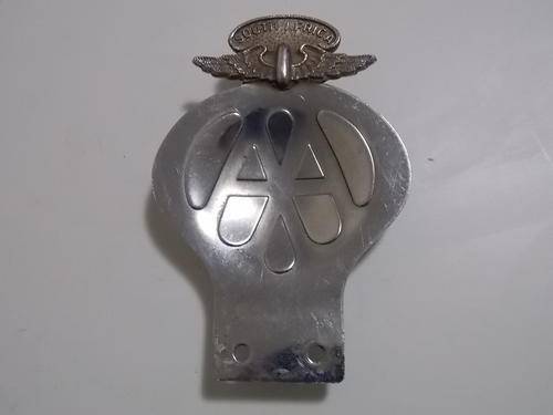 This domed badge measures 140 x 95 mm. and is numbered A 70509. It is in a fairly good condition with minor scratches on the front as well as a little bit of rust discoloring on the mounting area on the reverse side. As per photo
