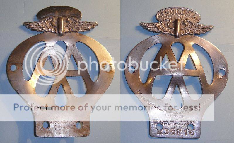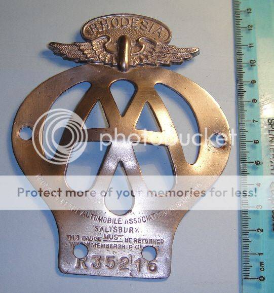 AA chromed Metal Automobile Association Badge : Salisbury, Rhodesia