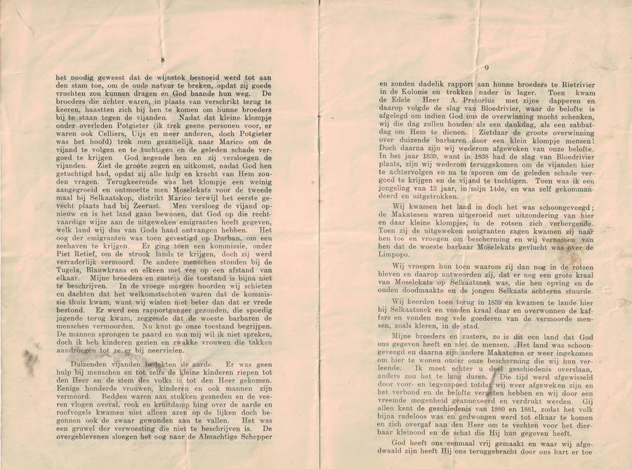 Quoted from Paul Kruger en die pers in die ZAR, 18901895, Heinie Heydenrych: 'Omdat die Republiek se onafhanklikheid so sentraal in Kruger se denke gestaan het, sou die aantasting daarvan in sy oë feitlik heiligskennis wees. Dit blyk daaruit dat hy soms in toesprake na die Godsvolk verwys het. Dit was veral die geval in sy Geloftedagtoesprake, ook bekend as Paardekraaltoesprake .. in 1896 se toespraak [De Volksstem, 19 Desember 1896, Dingaansdag] verklaar hy: God heeft u de vrijheid gegeven en gij heeft mij gekozen als hoof van den Staat'.
