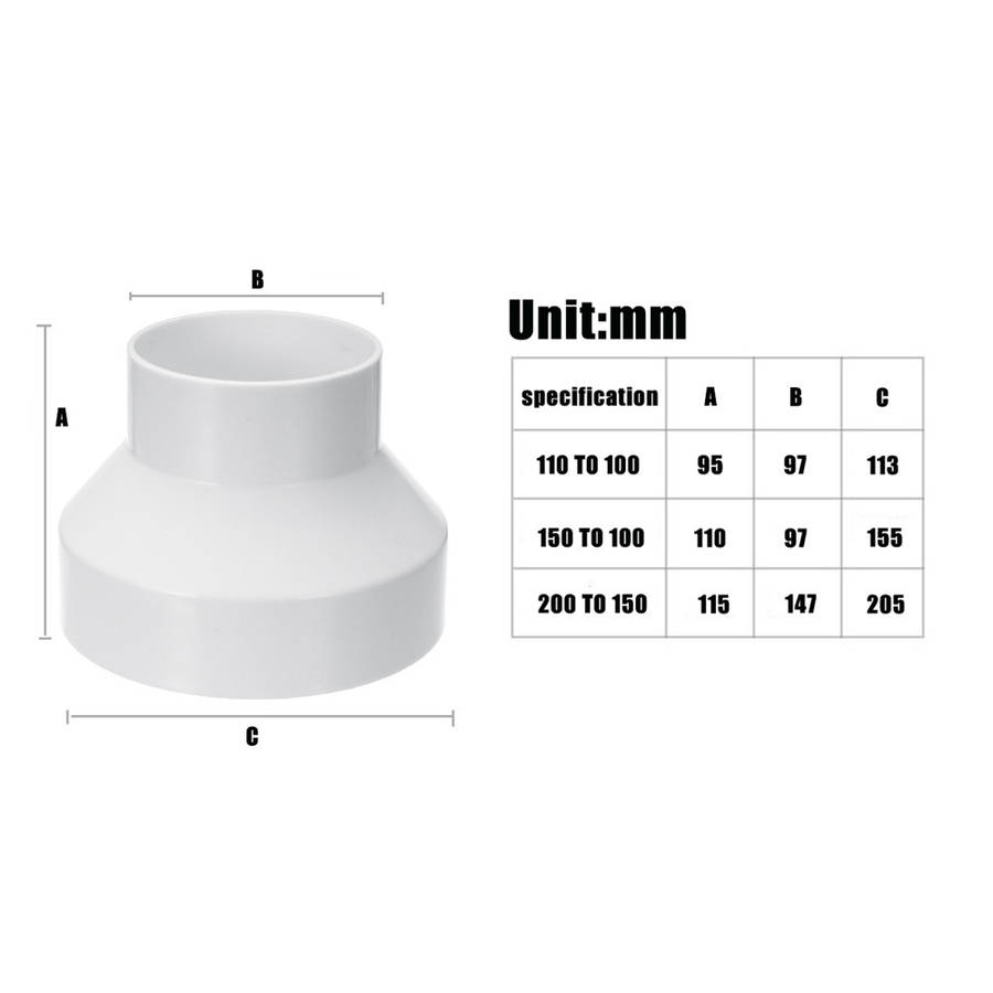 ABS Ventilation Pipe Reducer Adapter 110 to 100 / 150 to 100 / 200 to 150 (SIZE: 1#)