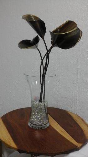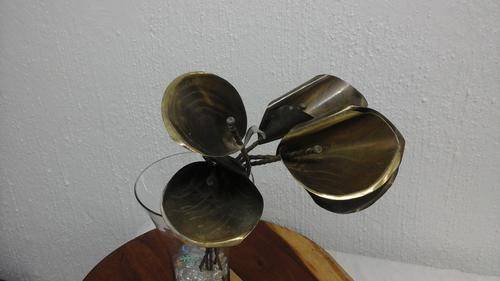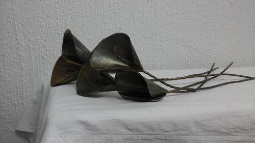 ABSOLUTELY BEAUTIFUL BRASS LILLIES. FIVE STUNNING LILLIES SHAPED OUT OF BRASS. THEY ARE APPROXIMATELY 560 MM LONG AND THE LILLIES ARE APPROXIMATELY 85 MM WIDE. THEY ARE IN GOOD CONDITION, IS SLIGHTLY TARNISH ED FROM AGE. SIMPLY STUNNING!