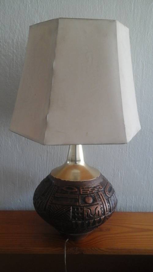 IT IS DISCOLORED. THE LAMP SHADE IS LOOSE AND VERY DISCOLORED. OVERALL IT IS IN REASONABLY GOOD WORKING CONDITION. .