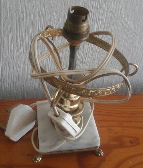 IT HAS DISCOLORATION AND WEAR AND TEAR. IT HAS A CRACK IN THE PORCELAIN. OVERALL IT IS IN REASONABLY GOOD WORKING CONDITION. IT IS INCOMPLETE AS THE STAND LOOKS TO BE MISSING A PIECE
