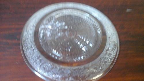 THIS FABULOUS PIECE IS ROUND IN SHAPE AND CLEAR IN COLOR. IT HAS A GORGEOUS FLORAL AND PATTERN DESIGN.